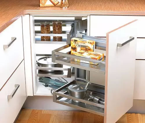 2、支撑杆属于先进配件,内部零件相对复杂,所以需要倍加小心。一旦气压(液压)装置受损,就会故障。所以应该避免在支撑杆上挂置重物、拉扯或磕碰。拉篮拉篮能为橱柜提供较大的储物空间,有效处理厨房用具的收纳问题,使各种物品和用具各得其所。此外,厨房主人根据自己的习惯,将厨具及餐具放在炉台拉篮中,将调味瓶、罐、盒,砧板,刀具,油壶等烹饪用物品放到多功能拉篮中,也就大大地提高烹饪流程。分类橱柜形式各异,柜体各储物空间也有不同,对此拉篮也演化出不同类型。“抽屉分隔“筐用于在抽屉中分隔物件,使之各就其位;水槽下方的柜体空间大,因为有管 道,不便于放搁板,“凹型抽屉拉篮”则能实现有序排放和空膛利用;当柜体内部取出不易,利用“四边拉篮”则能轻松解决问题;而“调料拉篮”则能有序地排列 调味品或厨具,使烹饪更便捷;还有别致的”转角拉篮“,也随着橱柜设计发展而逐渐兴起。
